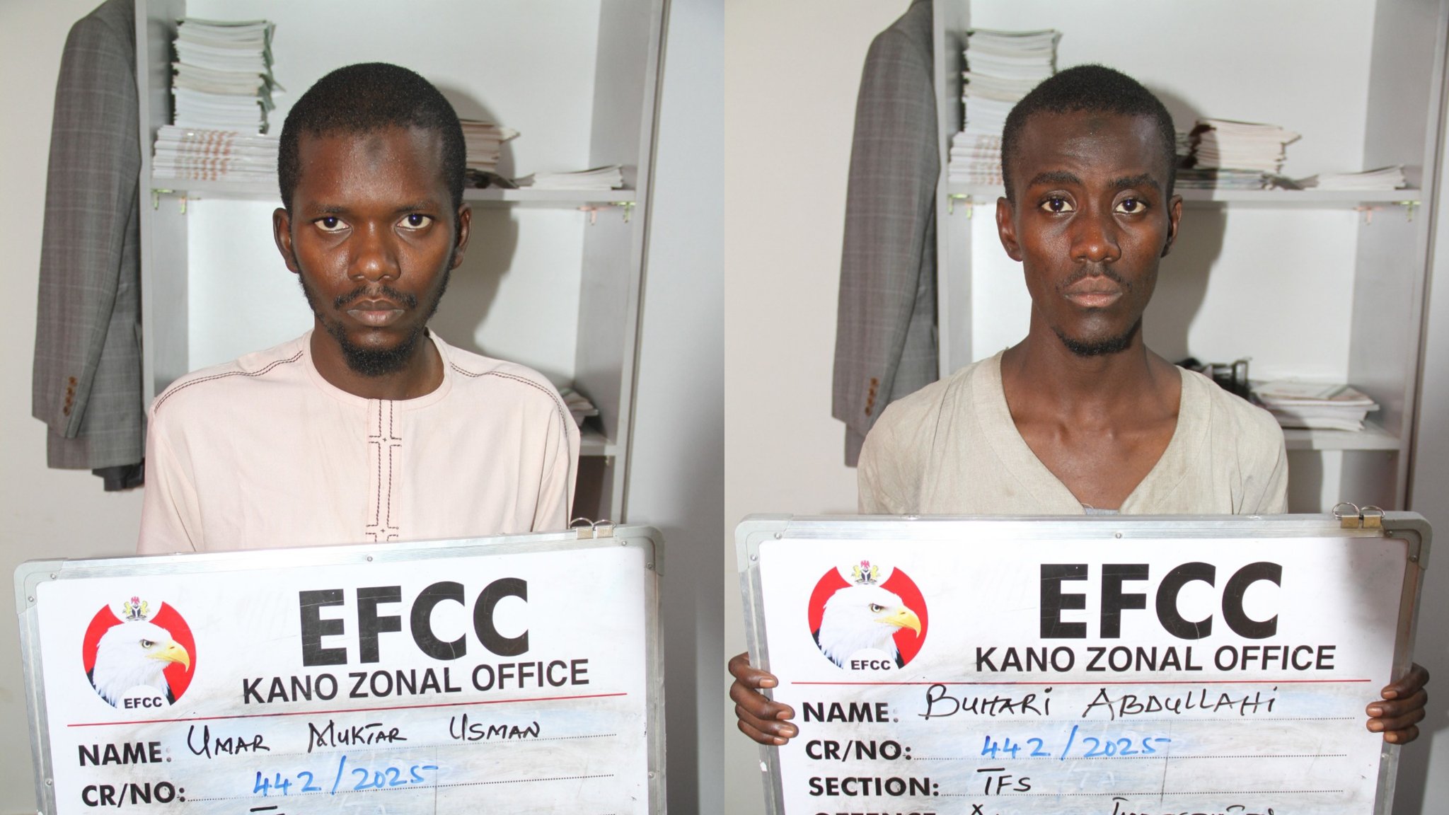 Two residents of Kano State, Buhari Abdullahi and Umar Mukhtar Usman, have been sentenced to six months’ imprisonment for falsely parading themselves as investigators of the Economic and Financial Crimes Commission (EFCC).
