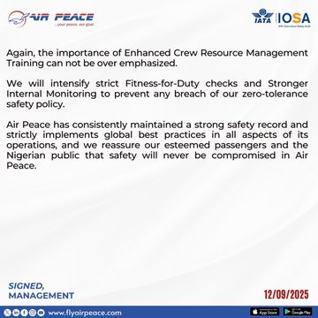 Air Peace backed its staff, saying the co-pilot was cleared by the NCAA and had since returned to duty. The airline stressed it operates strict alcohol and drug policies, adding that the NSIB never formally communicated its findings.