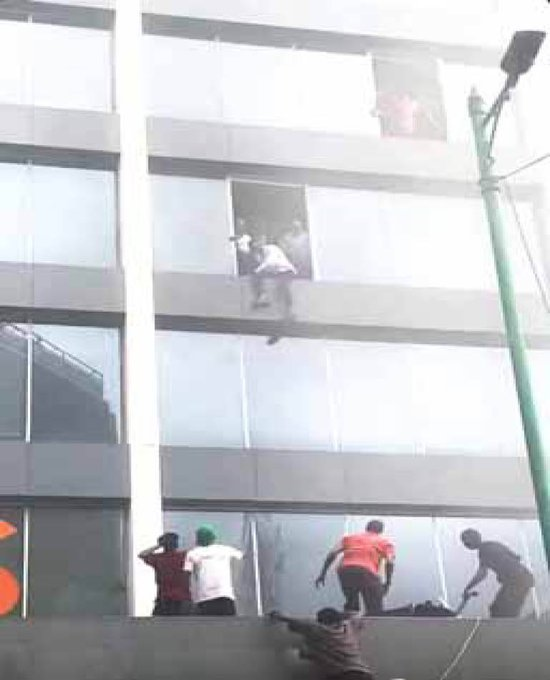 Eyewitnesses reported chaotic scenes as workers smashed windows to escape, with some leaping down to safety while bystanders rushed to provide ladders and support. Videos from the scene showed smoke billowing from several floors of the tower as panicked occupants crowded at windows for air.