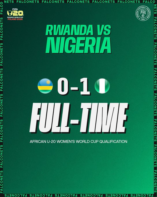 Nigeria’s U-20 women’s national team, the Super Falconets, boosted their chances of qualifying for the 2026 FIFA U-20 Women’s World Cup in Poland with a narrow 1-0 win over Rwanda in the first leg of their qualifier on Sunday in Kigali.