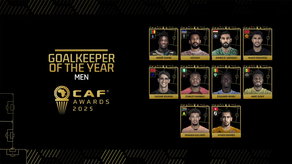 Morocco’s Yassine Bounou (Al Hilal) headlines the list, joined by Nigeria’s Stanley Nwabali (Chippa United) and reigning champion Ronwen Williams (Mamelodi Sundowns).