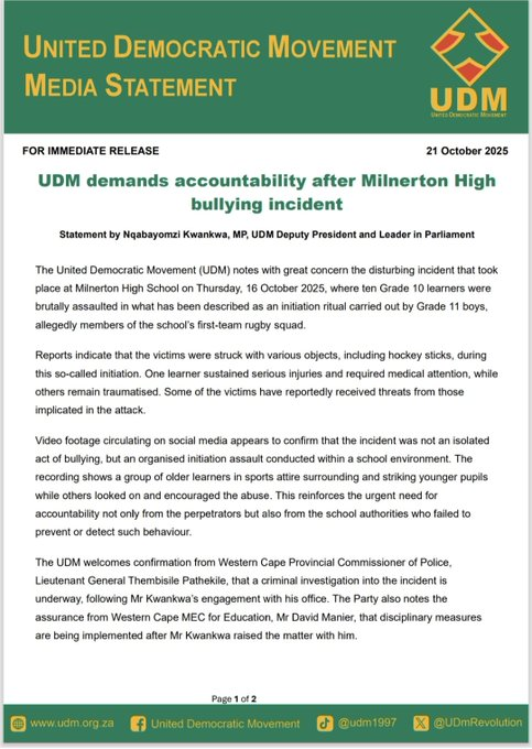 Amnesty International South Africa described the video as “deeply disturbing,” urging authorities to take swift disciplinary and legal action. “No child should ever endure such brutality in a space where pupils should be safe and protected from harm,” the organization wrote on X (formerly Twitter).