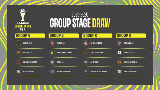 Group D features Tunisia’s Espérance de Tunis, four-time winners of the competition, alongside Simba SC (Tanzania), Petro de Luanda (Angola), and Stade Malien (Mali) — ensuring more top-tier matchups across Africa.
