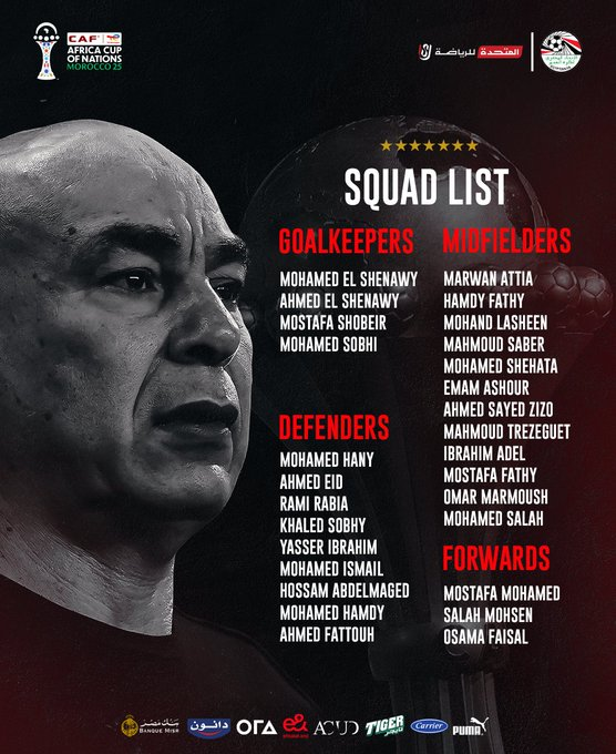 Egypt coach Hossam Hassan has unveiled his final 28-man squad for the 2025 Africa Cup of Nations in Morocco, selecting a blend of seasoned stars and emerging talents as the Pharaohs chase an eighth continental crown.