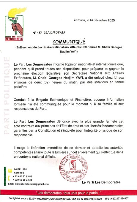 Another close associate, a member of the Democrats Party, the country’s main opposition party led by Boni Yayi said it was unclear whether the arrest was linked to the events of the previous Sunday.