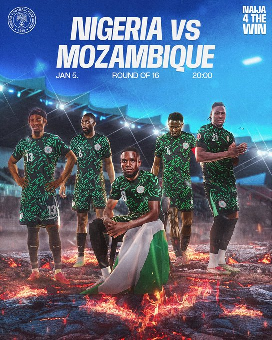 Nigeria will continue their pursuit of a fourth Africa Cup of Nations title when they take on Mozambique in the Round of 16 on Monday at the Fez Stadium, Morocco.