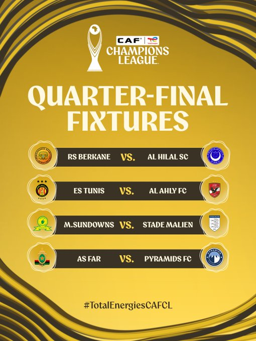 The Confederation of African Football (CAF) has confirmed the fixtures for the quarterfinals of the CAF Champions League, following the recent draw, BSNSports.com.ng reports.