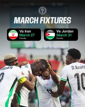 Nigeria will face Iran on March 27 before taking on Jordan on March 31, with both matches scheduled to be played in Antalya, Turkey. The fixtures were initially set for Amman but were relocated due to the ongoing conflict in the Middle East.