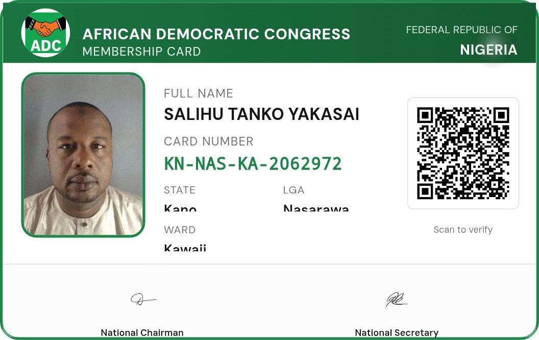 Yakasai announced his decision on Monday, stating that he has registered with the ADC and obtained his membership card.